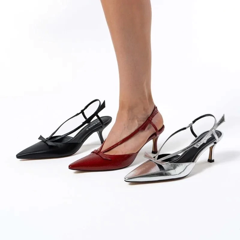 O slingback Charlotte é perfeito para compor looks elegantes e atemporais. Seu design clean traz um charme extra com o detalhe de laço delicado no cabedal, enquanto as tiras ajustáveis por elástico garantem praticidade e conforto ao caminhar. Possui salto médio fino na altura de 6,5cm.