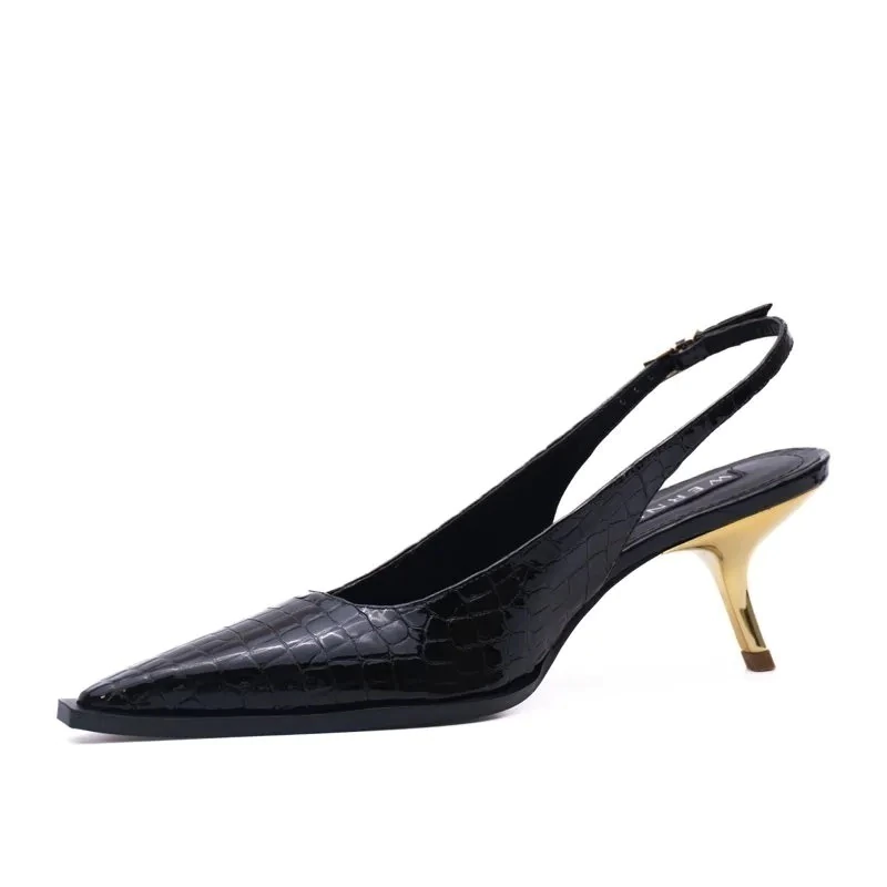 O slingback Olive é perfeito para quem procura um produto sofisticado e atemporal. Possui salto médio fino na altura de 6,5cm com acabamento geométrico, que adiciona um toque contemporâneo. Sua forma alongada com bico fino e vira confere elegância, enquanto a tira ajustável com fivela proporciona praticidade e conforto para o uso.