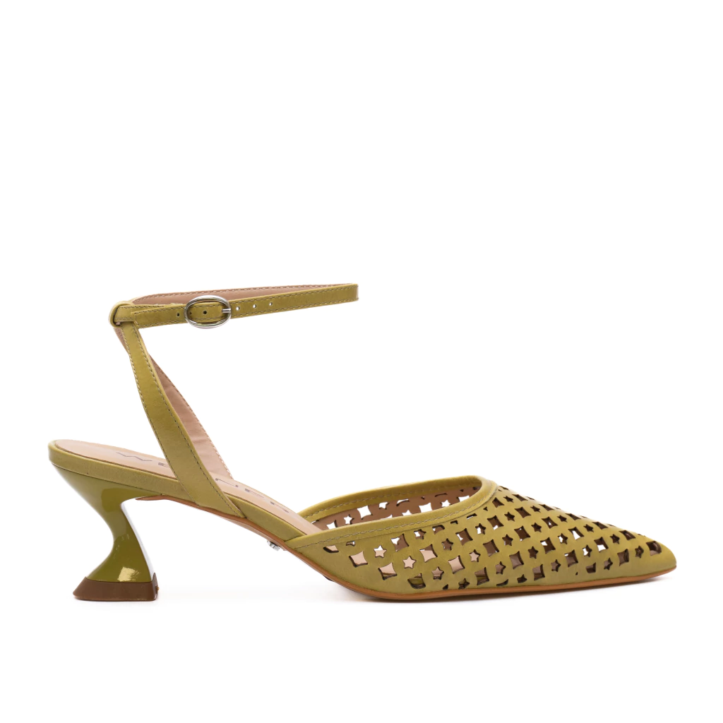 O slingback Kalany é perfeita para quem procura estilo e conforto no mesmo passo. Este modelo apresenta um design sofisticado com bico fino e recortes a laser, que conferem leveza, charme e um toque moderno. O salto médio na altura de 5cm, oferece estabilidade sem comprometer o estilo. A tira ajustável no tornozelo proporciona um ajuste seguro e delicado.