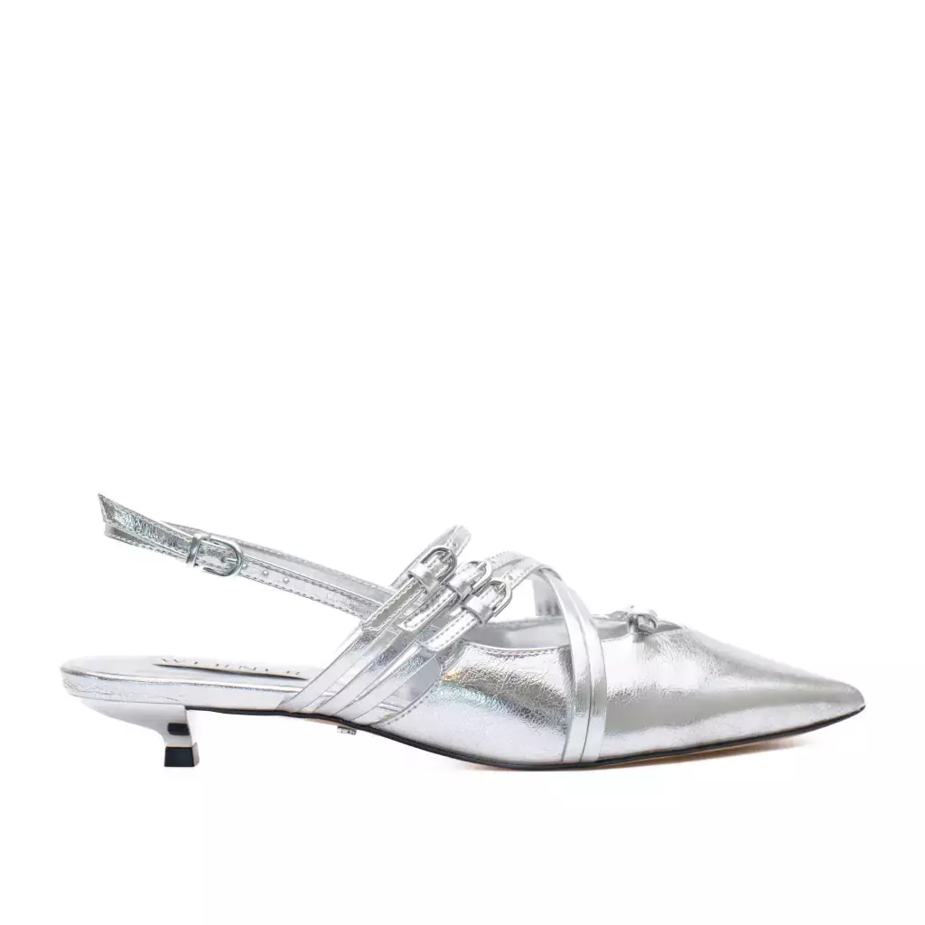 O slingback Sophie combina o design clássico com um toque moderno, trazendo detalhes sofisticados em tiras e fivelas delicadas. O salto kitten de 2 cm proporciona leveza e estilo, ideal para o dia a dia. Ajuste perfeito com tira regulável no tornozelo.