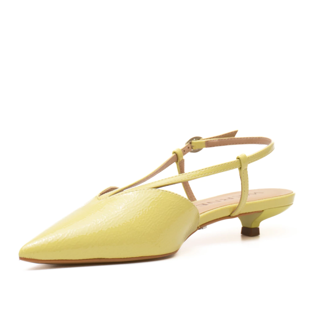 O slingback Kendal apresenta um design delicado, com linhas suaves e uma estrutura refinada. A parte frontal é fechada e em formato alongado e pontiagudo, conferindo um ar elegante e sofisticado. A lateral conta com uma abertura discreta que adiciona leveza ao visual. O modelo é aberto na parte de trás, com uma pequena fivela metálica que permite a regulação e o ajuste ideal ao tornozelo, garantindo estabilidade e conforto. O salto é baixo na altura de 2cm, com base ligeiramente mais larga, oferecendo um equilíbrio entre elegância e praticidade.