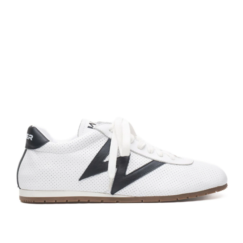 O tênis Wavie combina o charme dos modelos esportivos dos anos 80 com um toque moderno e conforto contemporâneo. Versátil e cheio de personalidade, destaca-se pela estética retrô e pela facilidade de compor diferentes estilos. O cabedal em couro traz recortes circulares vazados e a letra 'W' na lateral, assinatura da marca.