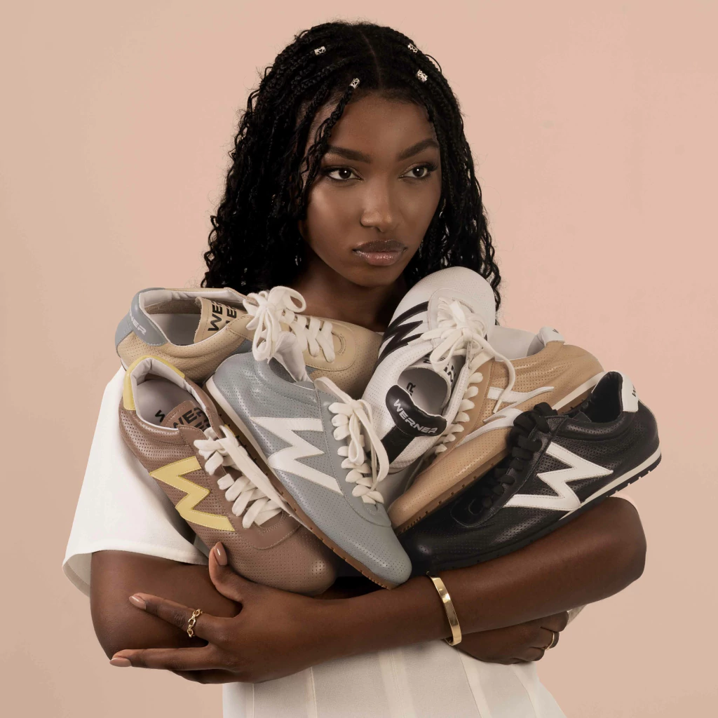 O tênis Wavie combina o charme dos modelos esportivos dos anos 80 com um toque moderno e conforto contemporâneo. Versátil e cheio de personalidade, destaca-se pela estética retrô e pela facilidade de compor diferentes estilos. O cabedal em couro traz recortes circulares vazados e a letra 'W' na lateral, assinatura da marca.